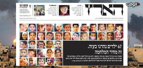 في خطوة غريبة من نوعها ضمن التغطية الإسرائيليّة الإعلاميّة، قامت صحيفة “هآرتس” العبريّة، بنشر صور الأطفال الفلسطينيين الذين استشهدوا في العدوان الصهيونيّ الأخير على قطاع غزة المحاصر، والذي أدى إلى استشهاد مئات الأبرياء، بينهم عشرات الأطفال والنساء والمسنين، وإصابة ما يقارب 9000 آخرين، ناهيك عن الخراب الذي خلّفه العدوان الغاشم، وكتبت الصحيفة التي اعتدنا على انحيازها الكامل في الحروب السابقة للدعايّة الرسميّة السوداء لتل أبيب، في عنوانها الرئيسيّ، “67 طفلا قُتلوا في غزة.. هذا هو ثمن الحرب”.