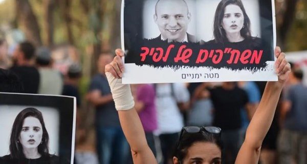 وتجمّع حوالي 300 مستوطن أمام منزل أييليت شاكيد في “تل أبيب” للاحتجاج على هذه الخطوة، ورفع بعضهم لافتات “خونة يسار”، بينما أظهر البعض الآخر صورًا لأبرز اثنين في الحزب تصفهما بأنهما “متعاونا لبيد”.