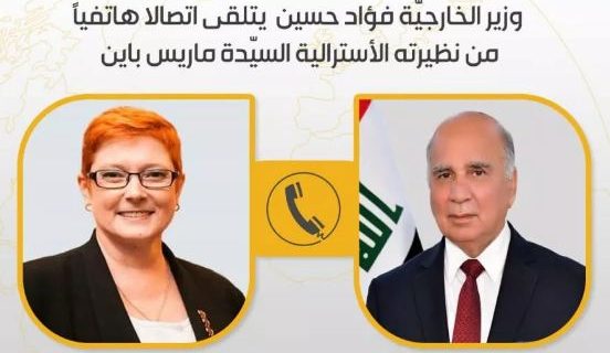 وقال المكتب الاعلامي لوزير الخارجية في بيان تلقت *الرأي* الدولية نسخة منه، إن “وزير الخارجيَّة فؤاد حسين تلقى اليوم الأربعاء 2 حزيران 2021، اتصالاً هاتفياً من وزيرة خارجيَّة أستراليا ماريس باين، وبحث الجانبان ضرورة تعزيز العلاقات الثنائيّة، والارتقاء بها إلى ما يُلبّي طموح الشعبين الصديقين”، لافتا الى أن “الوزير أعرب عن شكره إلى الحُكُومة الأسترالية لمواقفها الداعمة للعراق في حربه ضدّ عصابات داعش الإرهابيّة، داعياً إلى أهمّية استمرار الدعم إلى حين القضاء على الفكر الذي أنتج هذه الجماعات الإرهابيّة”.