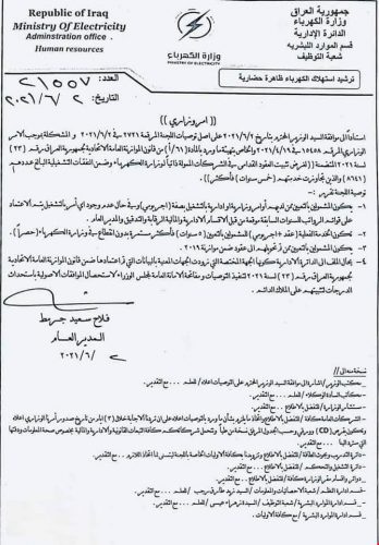 بالوثيقة.. تفاصيل تثبيت العقود في وزارة الكهرباء