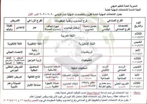 بالوثيقة : التربية تعلن جدول الامتحانات المهنية العامة