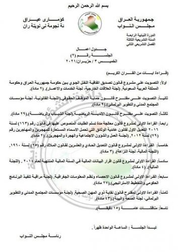 بالوثيقة.. جدول اعمال جلسة البرلمان