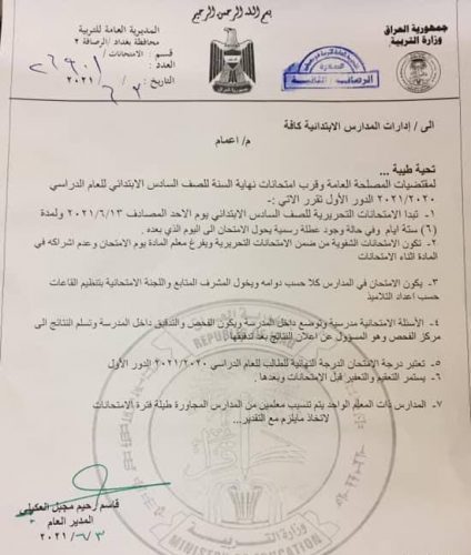 بالوثيقة.. توجيهات بخصوص إمتحانات السادس الابتدائي