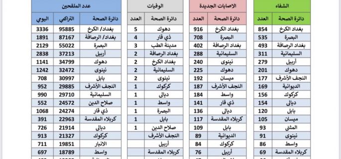 الصحة تسجل 4262 اصابة جديدة بكورونا