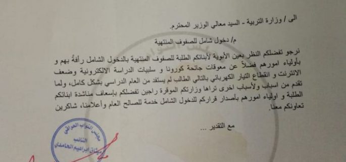 بالوثيقة.. طلب نيابي باعتماد الدخول الشامل للصفوف المنتهية