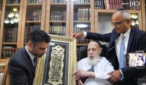 وفي وقت سابق، نشر تقريرا لصحيفة يديعوت أحرونوت عن “لقاء جمع آل خاجة مع الحاخام شالوم كوهين، رئيس مجلس حكماء التوراة في حركة شاس، بمنزله بالقدس المحتلة، حيث ناقشا الاتفاقيات الإبراهيمية، كما وصفها السفير الإماراتي، وليس اتفاقيات السلام؛ لأن جوهرها ديني وروحي، وليس سياسيا فقط، وقد أعطى كوهين للسفير مباركة الكهنة، وتوقيع المدرسة الدينية”.