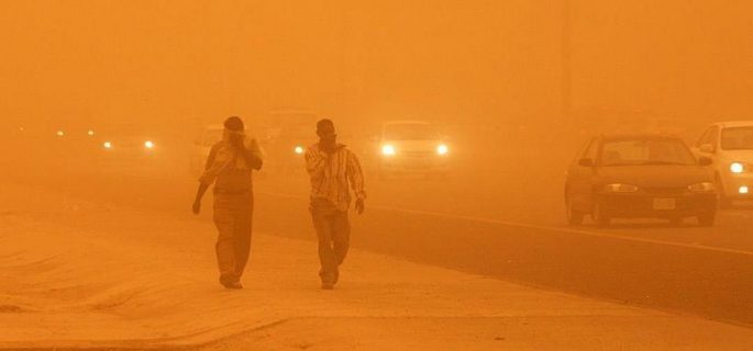 وبينت أن “المنطقة الجنوبية ستشهد بالأيام المقبلة تصاعدا للغبار بسبب سرعة الرياح التي تصل إلى (40-30) كم/س، ليكون مدى الرؤية فيها اثناء الغبار (3-5) كم لليومين المقبلين و (2-4) كم يومي الجمعة والسبت المقبلين”.
