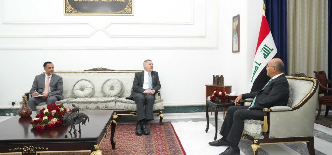 بحث رئيس الجمهورية برهم صالح، مع السفير الأمريكي لدى العراق ماثيو تولر عدة ملفات بينها مكافحة الفساد والارهاب.