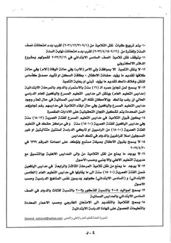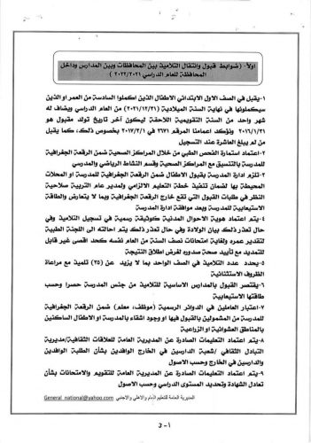 بالوثيقة.. التربية تحدد ضوابط انتقال التلاميذ والطلبة بين المحافظات والمدارس