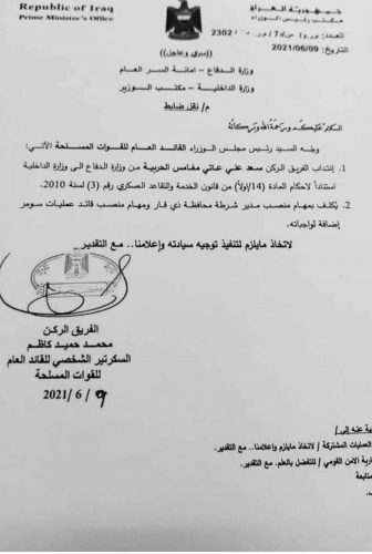 بالوثيقة .. تكليف سعد حربية بمهام قائد شرطة ذي قار