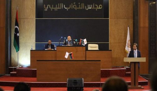 أرجأ مجلس النواب الليبي جلسته، اليوم الاثنين، إلى الغد بعد نشوب شجار بين عدد من النواب على خلفية التطرق لزيارة وزير الدفاع التركي الأخيرة إلى طرابلس”.