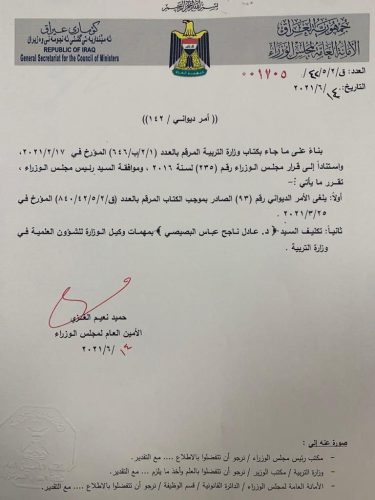 بالوثيقة.. تكليف البصيصي بوكالة التربية