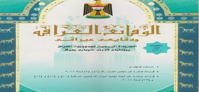 وأعلنت وزارة العدل، في بيان تلقت *الرأي* الدولية نسخة منه، “صدور العدد الجديد من جريدة ‏‏الوقائع العراقية بالرقم (4636)، والذي ‏تضمن عدداً من ‏البيانات التي صادقت عليها رئاسة الجمهورية “.