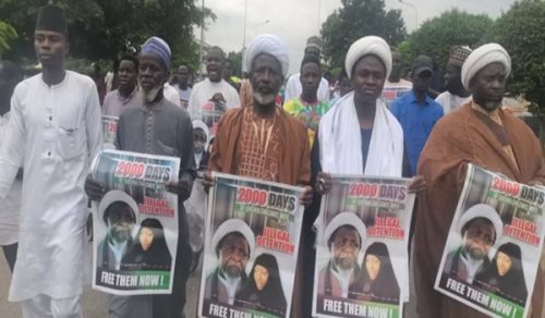 وانطلقت يوم الاثنين مسيرات لأنصار الشيخ ابراهيم زكزاكي زعيم الحركة الاسلامية في نيجيريا، في شوارع ابوجا، مطالبة بالافراج عن الشيخ زكزاكي وزوجته فورا.