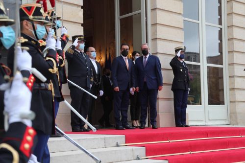 استقبال رسمي لرئيس مجلس النواب محمد الحلبوسي في قصر لاسيه في باريس.