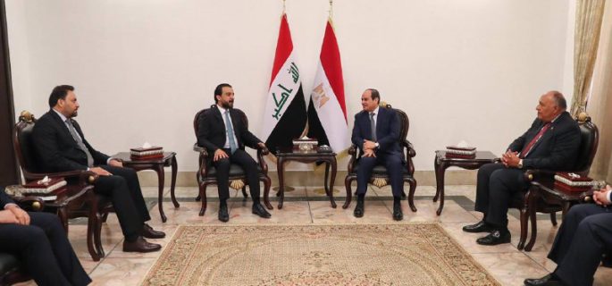 التقى رئيس مجلس النواب محمد الحلبوسي، الأحد، بحضور نائبه الأول حسن الكعبي، بالرئيس المصري عبد الفتاح السيسي في بغداد.
