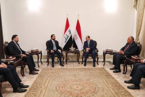 التقى رئيس مجلس النواب محمد الحلبوسي، الأحد، بحضور نائبه الأول حسن الكعبي، بالرئيس المصري عبد الفتاح السيسي في بغداد.
