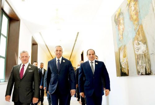 وقال الكاظمي في تغريدة على تويتر، ان “بغداد السلام والعروبة تستقبل اليوم بكل ود وترحيب ضيفيها الكريمين، أخي الملك عبد الله الثانيوأخي الرئيس عبد الفتاح السيسي، لعقد القمة العراقية – الأردنية – المصرية”.