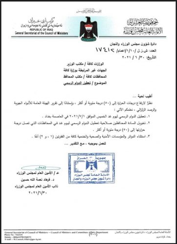 بالوثيقة.. امانة مجلس الوزراء تعطل الدوام الرسمي ليوم غد