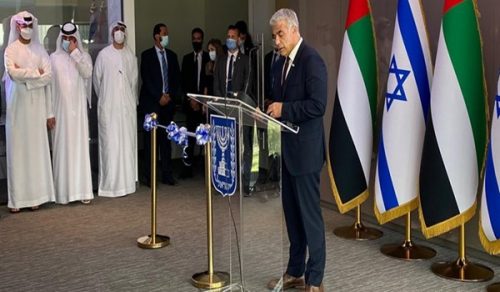 وافتتح لابيد، الثلاثاء، أول سفارة رسمية للاحتلال في العاصمة الإماراتية أبوظبي، واعتبر أن هذا الافتتاح يمثل “لحظة تاريخية”، على حد وصفه.