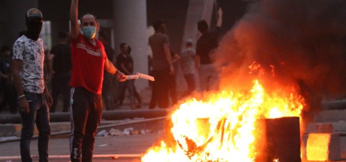 وقال إن “العشرات من المحتجين في محافظة البصرة اقدموا اليوم، على حرق الإطارات وقطع شارع بغداد أمام حركة المركبات”.