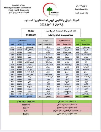 الصحة تسجل 6378 إصابة جديدة بكورونا