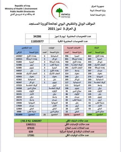 الصحة تسجل 5375 اصابة جديدة بكورونا