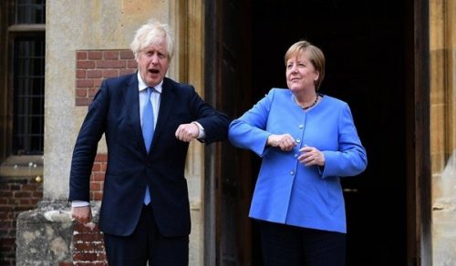 انتشر مقطع فيديو عبر مواقع التواصل الاجتماعي، يظهر رئيس الوزراء البريطاني بوريس جونسون في موقف “غير لائق” مع المستشارة الألمانية أنغيلا ميركل خلال زيارتها الأخيرة إلى لندن.