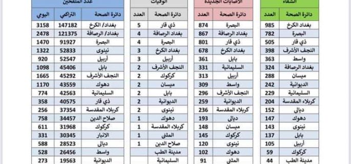 الصحة تسجل 6264 اصابة جديدة بكورونا