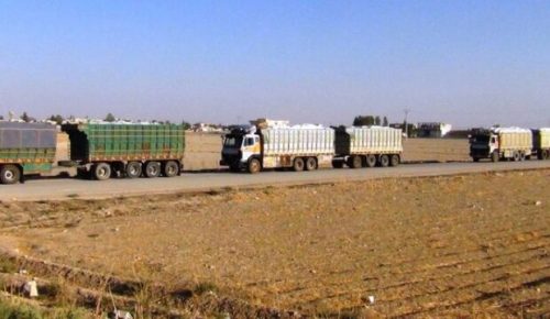 وذكرت مصادر محلية من قرية السويدية في ناحية اليعربية لمراسلة سانا أن رتلاً من 45 شاحنة وصهريجاً محملة بالقمح والنفط غادرت منطقة رميلان ودخلت معبر الوليد غير الشرعي إلى شمال العراق.