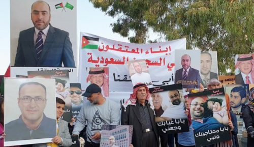 وعلى صعيد متصل، طالب العشرات من ذوي الموقوفين الأردنيين والفلسطينيين لدى السعودية بالافراج الفوري عن ذويهم ومحاسبة السلطات السعودية، حيث شارك العشرات منهم، يوم الأحد الماضي، في وقفة قرب سفارة الرياض بالعاصمة الأردنية عمّان؛ احتجاجا على تأجيل النطق بالحكم بحق عشرات الموقوفين الأردنيين والفلسطينيين منذ نحو عامين لدى السلطات السعودية. وذكرت مصادر اخبارية، بأن العشرات من ذوي الموقوفين الأردنيين والفلسطينيين لدى السعودية، تجمهروا قرب سفارة الرياض بعمان، رافعين صور أبنائهم، ومطالبين بإنهاء قضيتهم، والإفراج عنهم. وعلى هامش هذه الفعالية، قال “خضر المشايخ”، رئيس لجنة المعتقلين الأردنيين بالسعودية: “نحن هنا اليوم لنوصل رسالة إلى الملك سلمان بن عبد العزيز والسعودية أن أهالي المعتقلين الأردنيين باتوا يضيقون ذرعا بتأجيل المحاكمات للمرة الثانية”. وأضاف المشايخ: “إن كان هناك أي جرم فإننا ندعو لمحاكمة أبنائنا، نعتقد بأنهم لم يقوموا بأي عمل يجرمون عليه”.