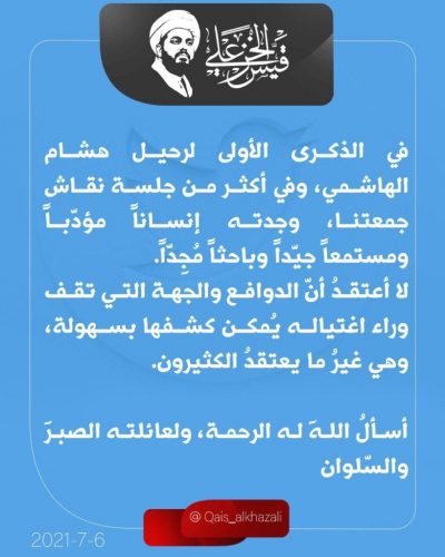 الخزعلي: الجهة المتهمة باغتيال الهاشمي لا يمكن كشفها بسهولة