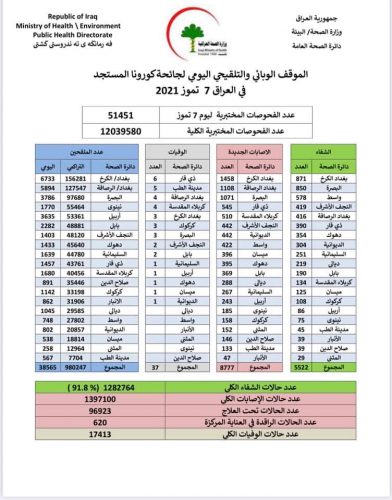 الصحة تسجل 8777 اصابة جديدة بكورونا