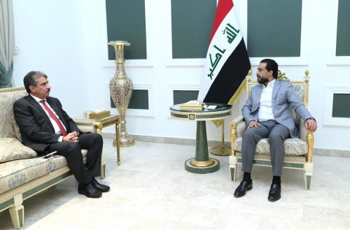 بحث رئيس مجلس النواب محمد الحلبوسي، الجمعة، مع السفير الكويتي في العراق سالم الزمانان الاوضاع في المنطقة.