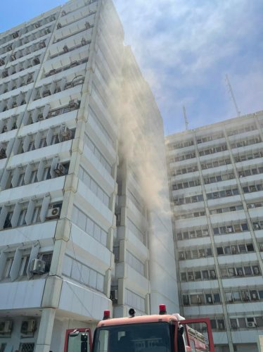 اخلاء وزارة الصحة من الموظفين والمراجعين بعد اندلاع حريق ضخم داخل المبنى