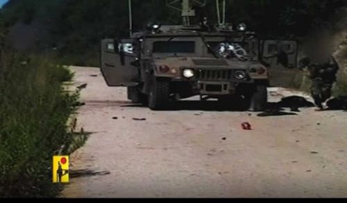وأشار شنايدر إلى أنه “نحن لا نرى بصورة واضحة شخصيات الاثنين لأن هذا أيضاً اختار حزب الله أن يشوشه، لكنها المرة الأولى التي يبث فيها هذا المقطع، للإخراج من داخل السيارة، وبعد ذلك نشاهد تفجير سيارة الهامر على يد المجموعات المضادة للدروع التابعة لحزب الله”.انتهى