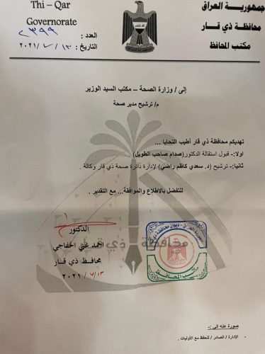 تكليف مدير جديد لصحة ذي قار
