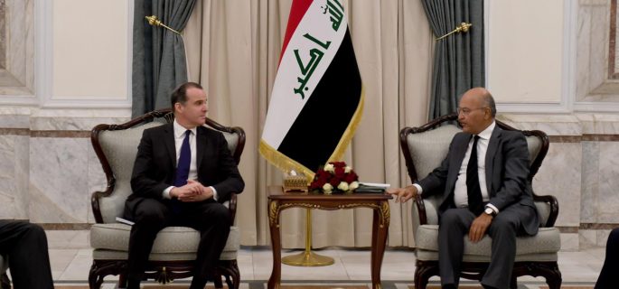 وذكر البيان تلقت *الرأي* الدولية نسخة منه، أن “رئيس الجمهورية، برهم صالح استقبل، اليوم، في قصر بغداد، منسق مجلس الأمن القومي الأمريكي لشؤون الشرق الأوسط وشمال أفريقيا السيد بريت مكغورك والوفد المرافق له”.