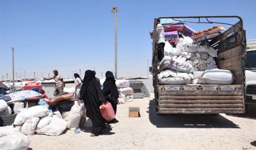 وصرح المسؤول عن القافلة بأن 106 عائلات غادرت المخيم في ظل الجهود التي تقوم بها الإدارة الذاتية لإخلاء المخيم من السوريين بضمانات عشائرية.
