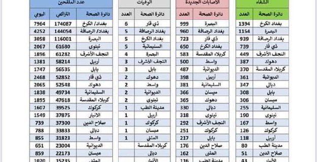 الصحة تسجل 8336 اصابة جديدة بكورونا