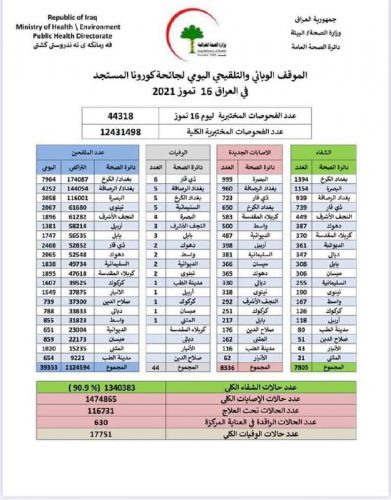 الصحة تسجل 8336 اصابة جديدة بكورونا