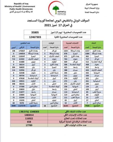 الصحة تسجل 8149 إصابة جديدة بفيروس كورونا