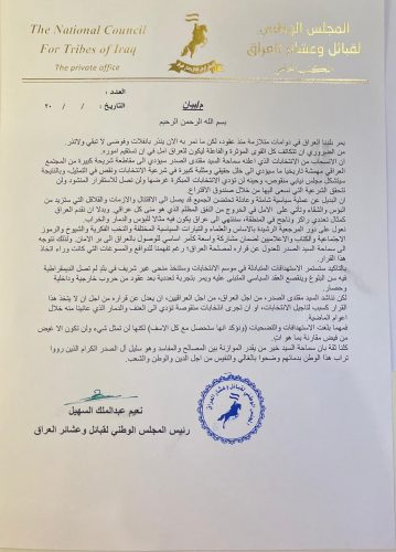 بالوثيقة.. مجلس قبائل وعشائر العراق يوجه رسالة للصدر بشأن الانتخابات