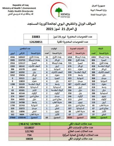 الصحة تسجل 8320 إصابة جديدة بكورونا
