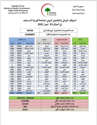 الصحة تسجل 8905اصابة جديدة بكورونا