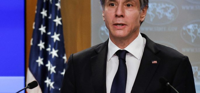 US Secretary of State Antony Blinken addresses reporters during his first press briefing at the State Department in Washington, DC, on January 27, 2021. (Photo by CARLOS BARRIA / POOL / AFP)