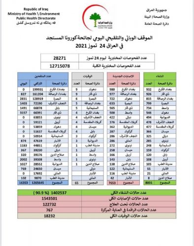 الصحة تسجل 7653 إصابة جديدة بكورونا
