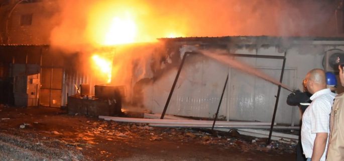 اخماد حريق ضخم اندلع بمحال تجارية جنوبي بغداد