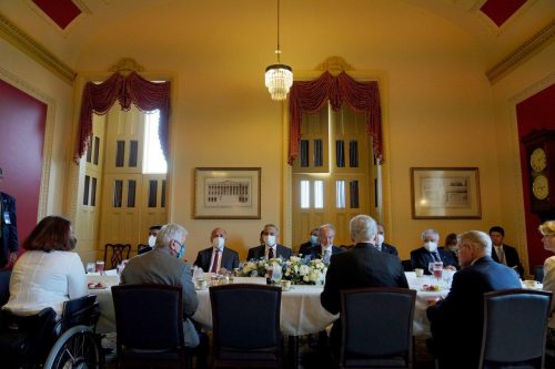 التقى رئيس مجلس الوزراء مصطفى الكاظمي، يوم الأربعاء، في واشنطن، زعيم الأغلبية عن الحزب الديمقراطي في مجلس الشيوخ الأمريكي تشاك شومر، وزعيم الأقلية الجمهورية ميتش ماكونيل، وعدداً من أعضاء مجلس الشيوخ من الحزبين الجمهوري، والديمقراطي.