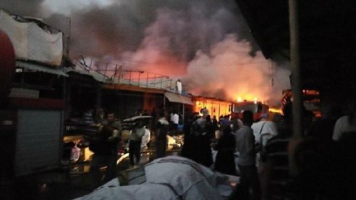 حريق كبير في مخزن تجاري وسط بغداد